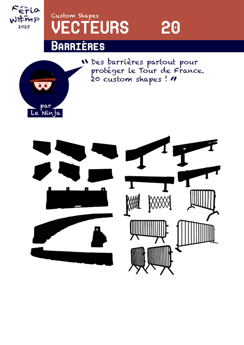 Qui dit « Tour de France », dit barrières ! 20 CUSTOM SHAPES de barrières de toutes sortes. Cliquez sur l’image ou sur ce lien !