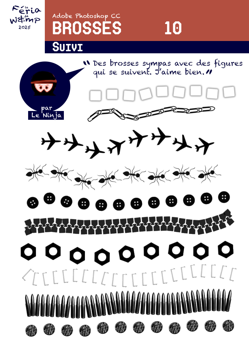 Le Ninja Capseur nous fait I0 BROSSES PHOTOSHOP avec des motifs qui se suivent comme des fourmis… Cliquez sur l’image ou sur ce lien !