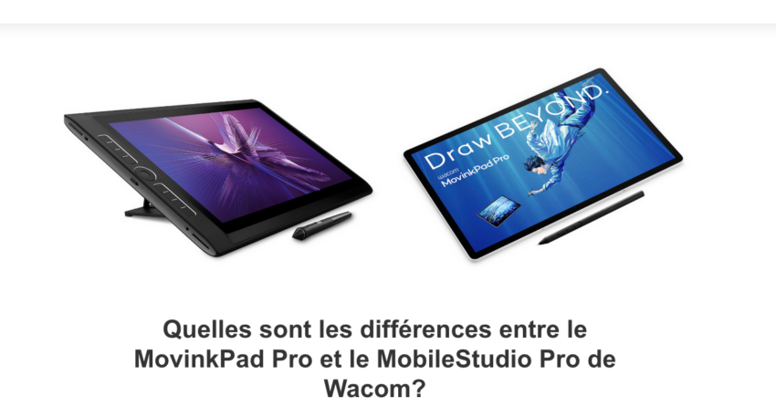 Wacom, dans son blog, a s’expliquer par un article ( https://community.wacom.com/fr-ca/what-are-the-differences-between-between-wacom-movinkpad-pro-and-mobilestudio-pro/) sur la différence entre MovinkPad et MobileStudio Pro. Il fallait plutôt écrire un article de quelle est la diff’ entre MovinkPad et Cintiq companion hybrid…