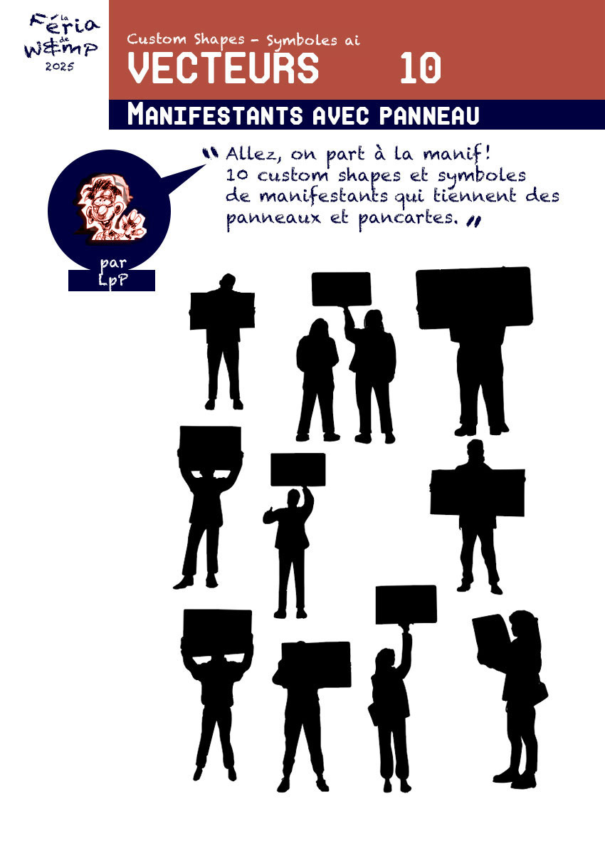 Qui dit « Barrières », dit « Manifestation aussi ! I0 CUSTOM SHAPES de manifestants avec des panneaux. Cliquez sur l’image ou sur ce lien !