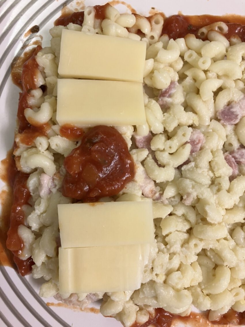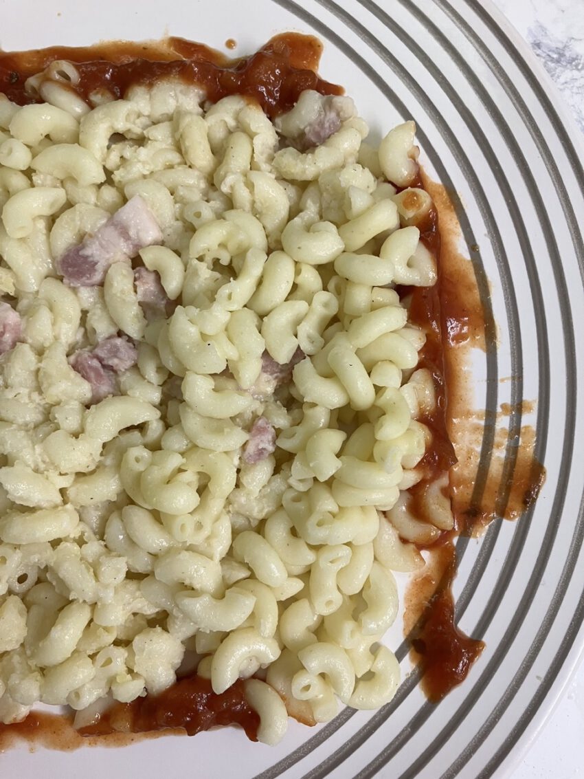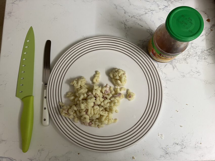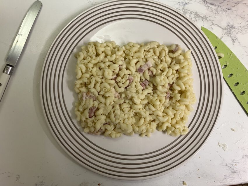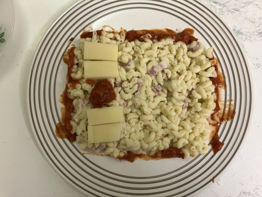 Après le riz, l’autre plat de l’étudiant ou du supercrevard : les pâtes ! Quoi de mieux qu’améliorer le dressage de votre assiette avec cette présentation « tablette-like ». Pour cela, vous aurez besoin de pâtes cuites, de sauce tomate et de gruyère. Un couteau large sera d’une grande utilité.